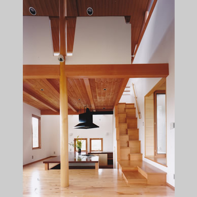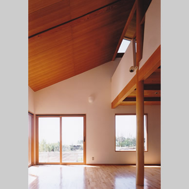 各棟共2つの勾配屋根の段差を利用したハイサイドライトから、陽の光をふんだんに取り入れている。談話室は食事の支度をしながら語り会える様に、掘り炬燵形式の大きいテーブルにキッチンが接続されている。