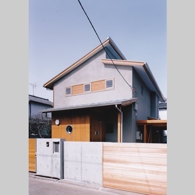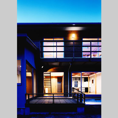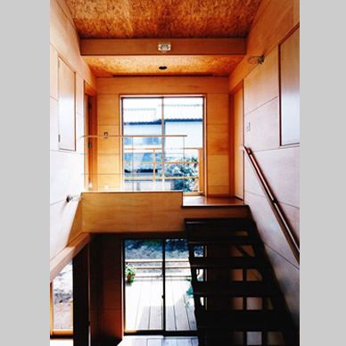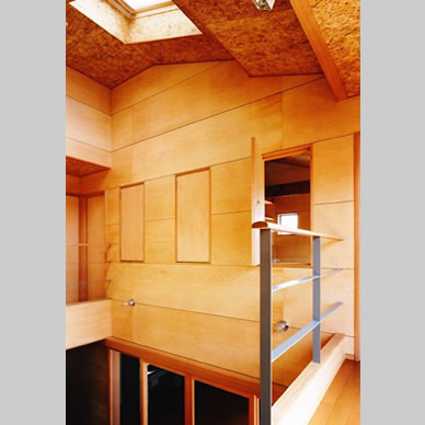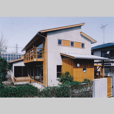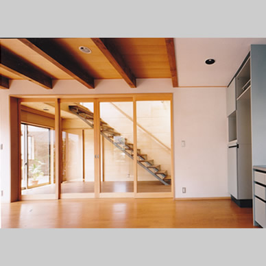 武蔵野の面影が残る住宅地で、敷地の半分近くを庭として残して計画した住宅である。庭を景観として楽しむだけでなく、四季折々に咲く花の香りを感じ、木々や土の息吹を直に楽しめる様に、トップライトを持つ吹抜空間である光庭を中央に設け、これを中心に全体を構成した。光庭は、床はデッキ材で階段のある空間であるが、1階では庭に張り出したデッキ部分と繋がり、家族室とはガラス引き込み戸で仕切られ、各個室とは木製の開口部を介して繋がっているので、全ての室に自然光や風が行き渡るようになっている。